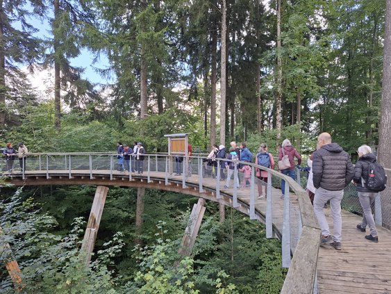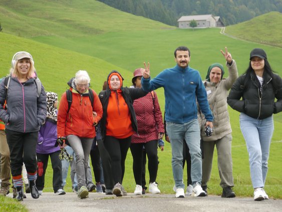 Beliebt waren erstaunlicherweise die Wanderungen. Erstaunlicherweise, weil vor allem die Frauen nicht besonders wandertüchtig waren. Deshalb achteten wir darauf, dass die Wanderungen nicht allzu anspruchsvoll werden. Hochhamm und Hochalp standen auf dem Programm, nebst einem Ausflug nach Mogelsberg zum Baumwipfelpfad. Die allgemeine Fröhlichkeit und Dankbarkeit der Teilnehmer war überwältigend. Trotz Anstrengung und eher kühlem Wetter wurde sogar fröhlich getanzt.